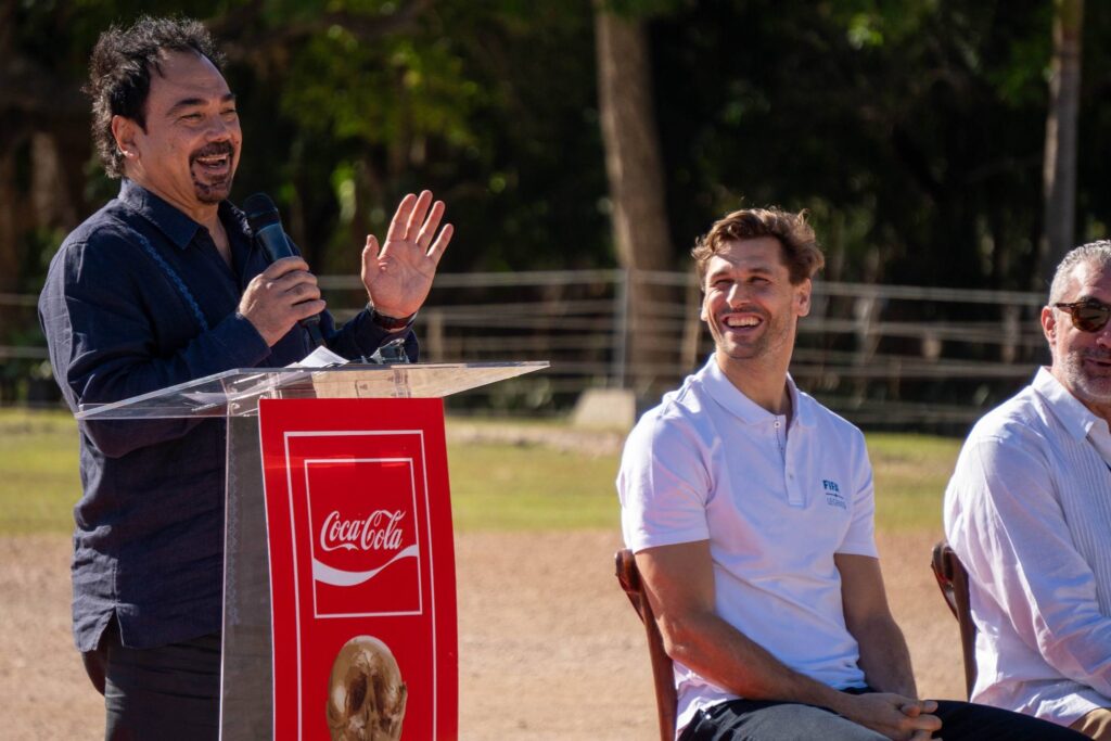 En el acto participaron los exfutbolistas Hugo Sánchez y Fernando Llorente, quienes acompañaron a las autoridades durante la exhibición del trofeo. Ambos formaron parte de las actividades programadas para promover el futbol y su vínculo con distintos destinos en el país.